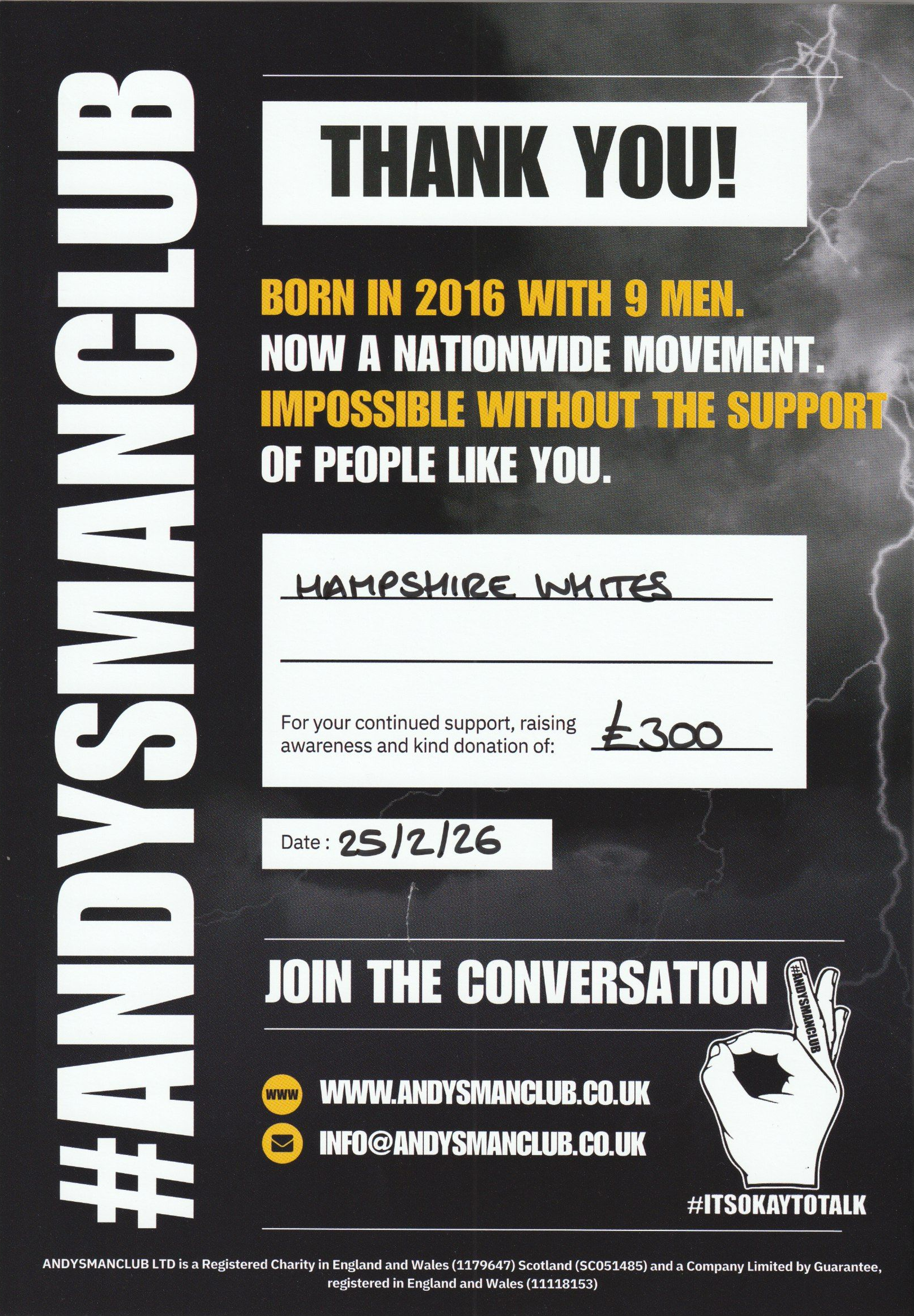 The money was raised by raffling a signed shirt to Hampshire Whites members. We would also like to thank Leeds United for their significant support in this venture.