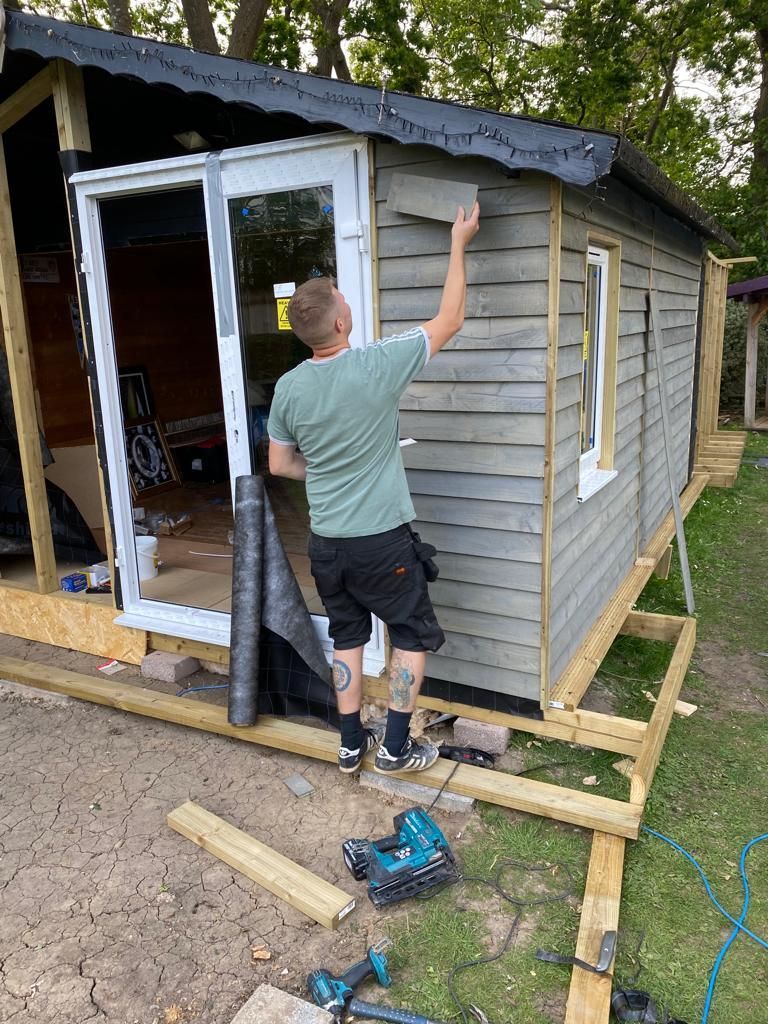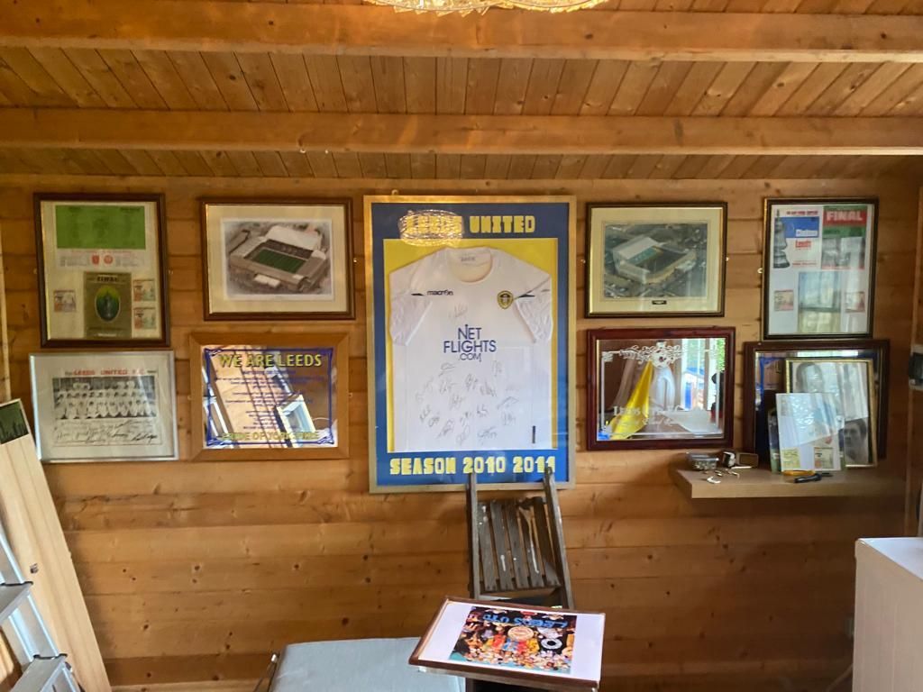 I moved in to a new bungalow with Di and Shaun , knowing it needed a lot of work to make it the home we really wanted. However what it needed more than anything else was a Leeds United room. With support from Di and Shaun we organised a 'shed' in the garden. The garden had to be flattened before they could start work but soon it was on its way.