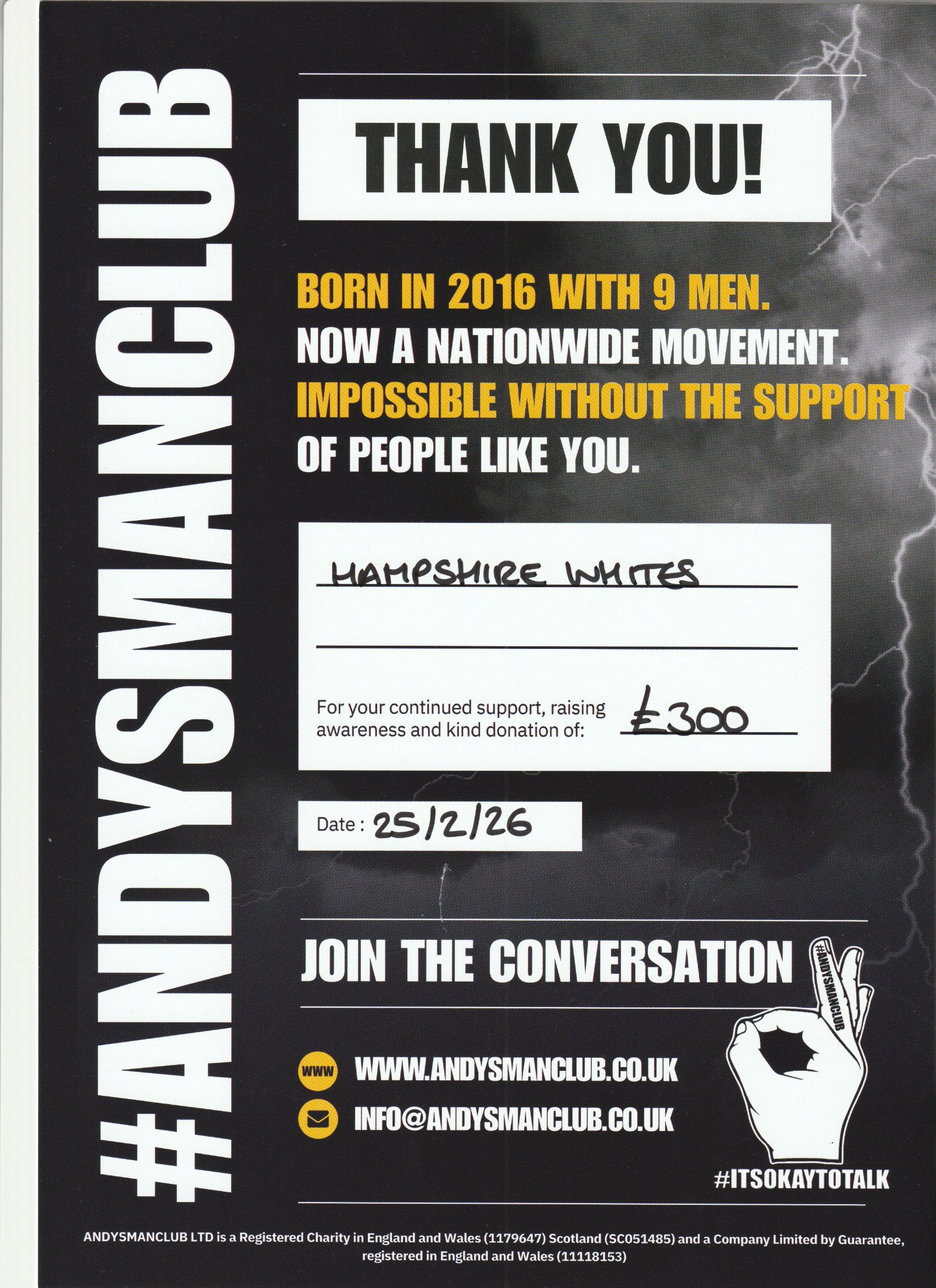 The money was raised by raffling a signed shirt to Hampshire Whites members. We would also like to thank Leeds United for their significant support in this venture.